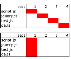 Nu overtuigd? Het kan dus zeker lonen om hiermee aan de slag te gaan. Gebruik je Google Analytics, gebruik dan in ieder geval de nieuwe code (asynchronous). Hieronder zie je visueel weergegeven wat het verschil in laden is van beide Google Analytics Codes.