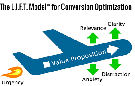 Chris geeft in zijn boek een raamwerk, zodat je serieus aan de slag kunt met conversieoptimalisatie: het LIFT-model. Dit raamwerk bestaat uit de volgende 7 stappen: