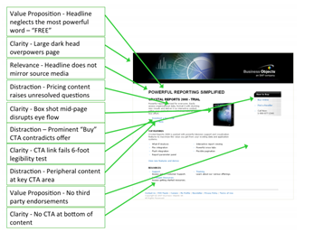 Widerfunnel maakte voor SAP een LIFT-analyse van de landingspagina. De belangrijkste conclusies hieruit waren: