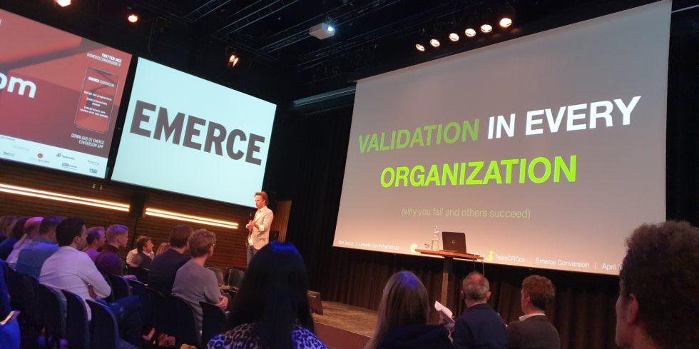 Bart Schutz (Online Dialogue) sloot Emerce Conversion af met een presentatie over ‘validation in every organization’. Hij ging in op welke stappen je op bedrijfs-, technisch en menselijk vlak moet nemen om te groeien naar een volwassen en echt succesvolle ‘culture of experimentation’.