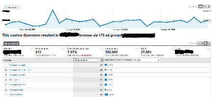 Hierboven staat een overzicht van een relatie waarbij we vanuit de custom report mogelijkheden binnen Google Analytics het mogelijk hebben gemaakt om alle advertentiegroepen in één overzicht bij elkaar te krijgen. Op basis van dat rapport kunnen we bepalen welke advertentiegroep beter scoort dan de ander.