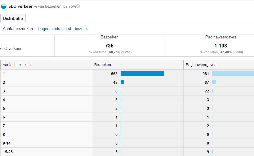 • Welk % >1 bezoek is afkomstig vanuit SEO?