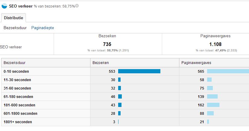• Hoeveel bezoeken >1 minuut haal je vanuit SEO?