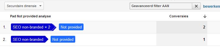 Nu kun je de conversiepaden bekijken waarin ‘not provided’ zoekwoorden en ‘non-branded’ zoekwoorden elkaar ondersteunen: