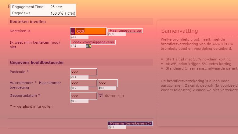 - welke invulvelden worden aangevinkt in de funnel? Een verzekeraar wil bijvoorbeeld weten, welke dekkingen worden aangevinkt