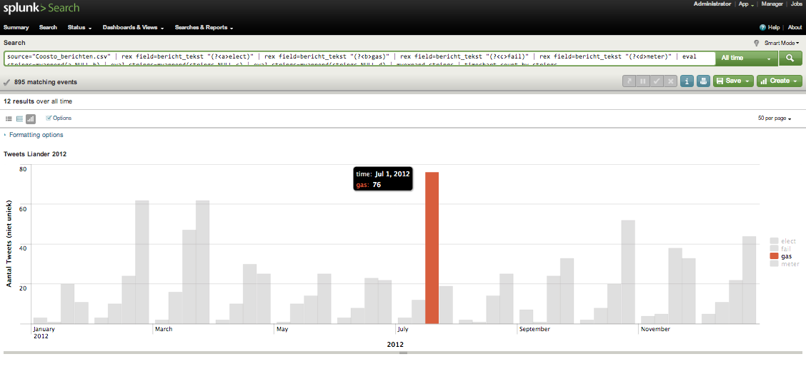 Klik op de piek “tweets met gas in juli 2012″…